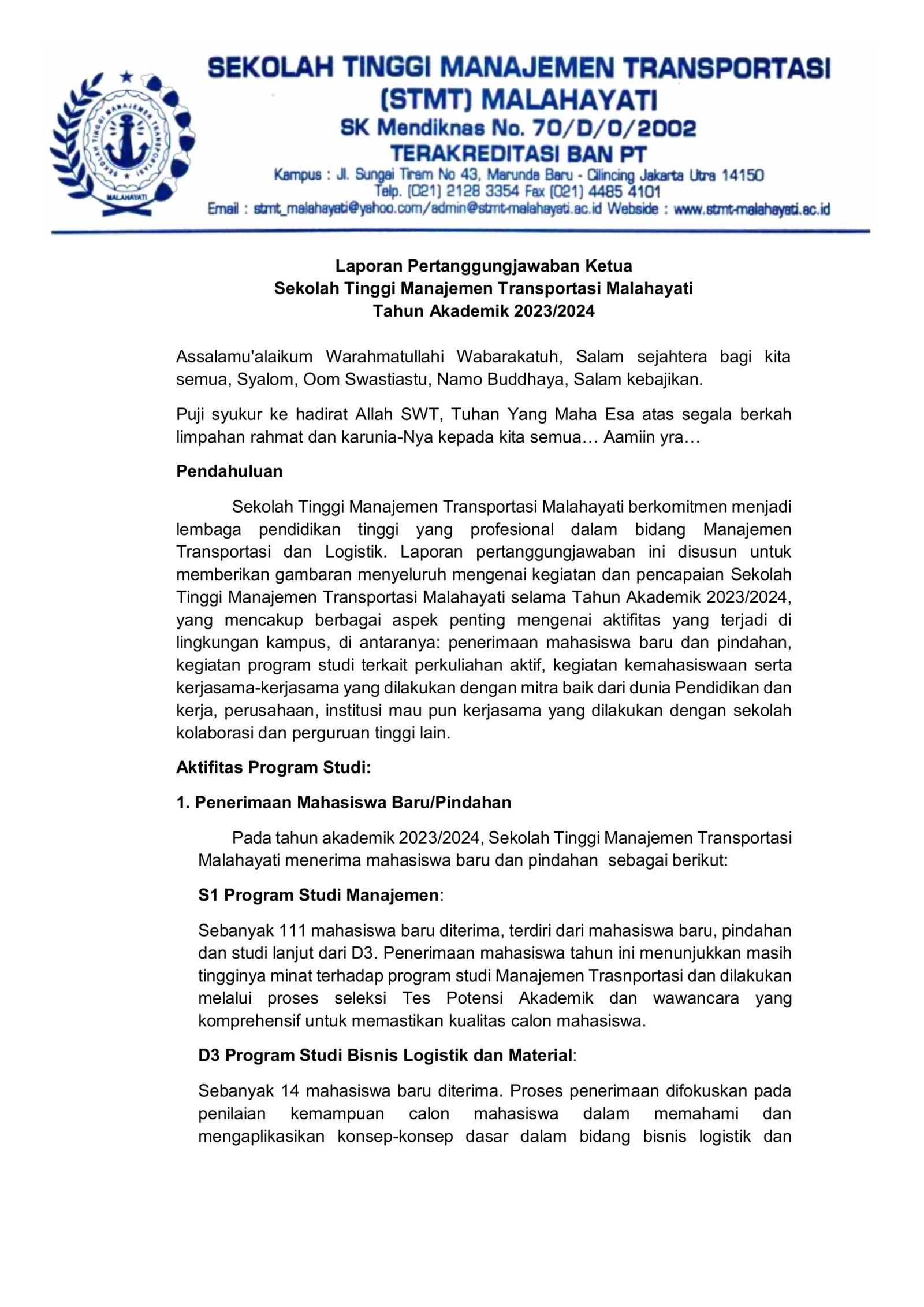 Laporan Pertanggungjawaban Ketua